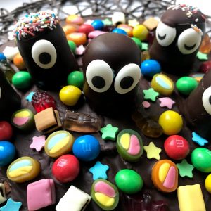 So richtig super gesund ist anders. Aber zum Geburtstag unseres Sohnes sollte es dann doch mächtig schokoladig und bunt zugehen. Da habe ich beim Zucker einmal ein Auge zugedrückt und mich dafür was das Dekorieren angeht ordentlich in der Süßwarenabteilung…