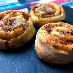 Pizzaschnecken mit Joghurt Dinkelmehl Teig