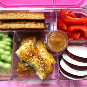 #LunchboxFriday 22 – Apfelmus Tarte, Rote Beete Fruchtriegel und Feta Knuspertaschen
